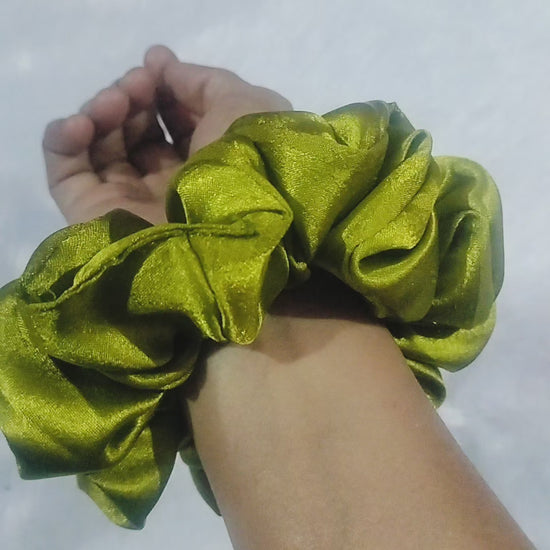 A beautiful Olive Green Satin Scrunchie 🌿✨.